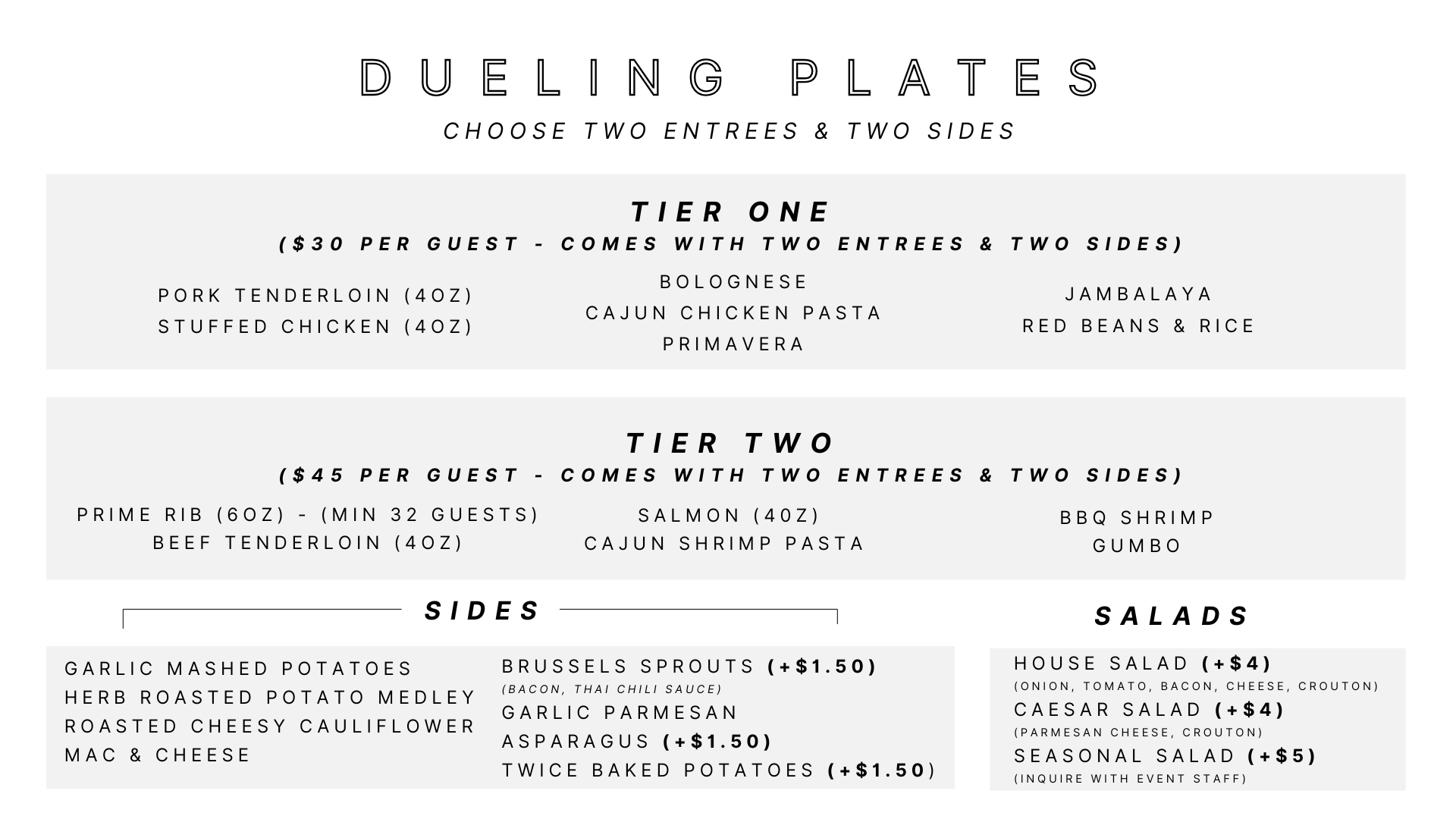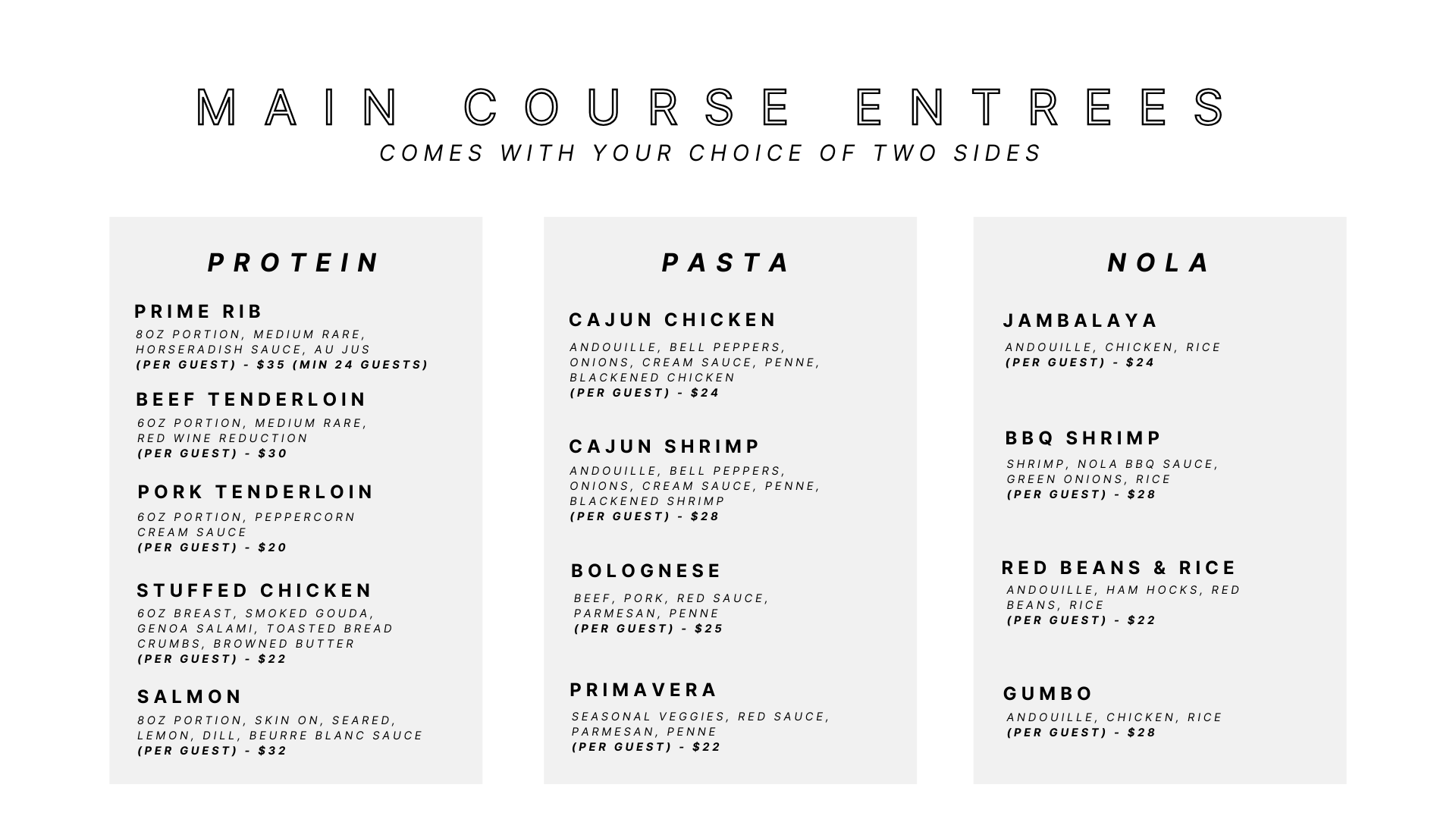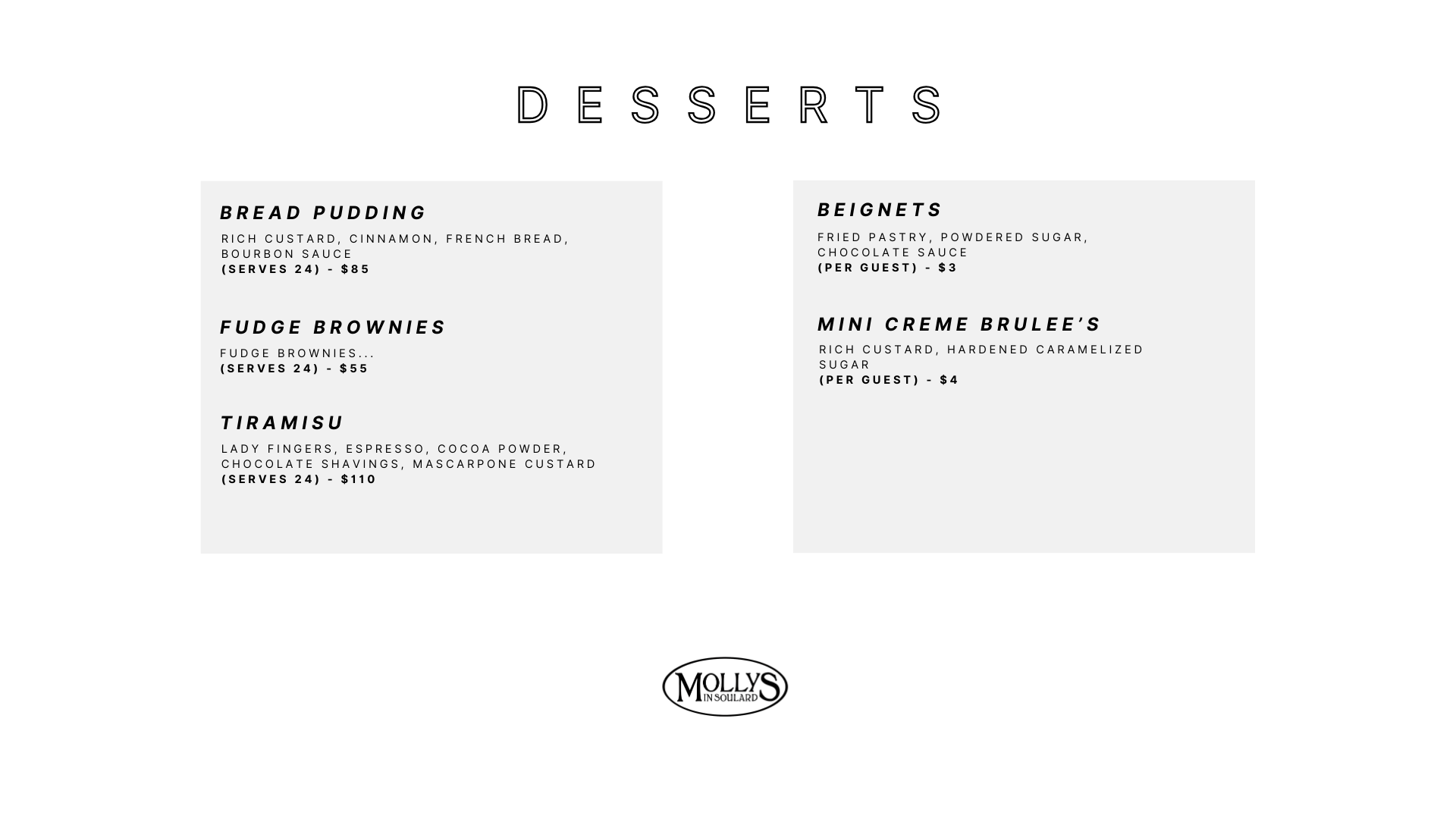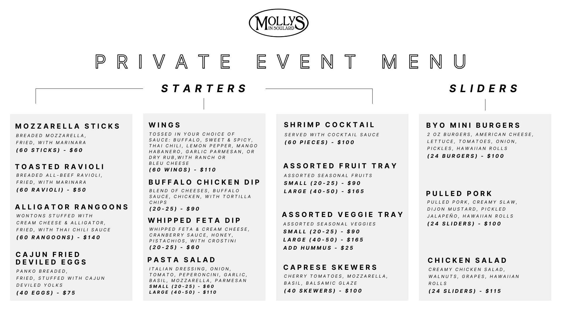 Private Events Menu